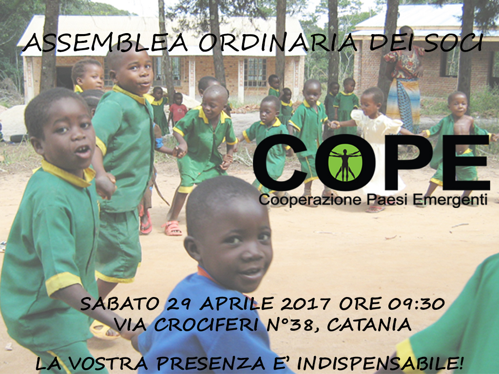 Sabato 29 Aprile 2017 il Co.P.E. si riunirà in occasione dell’ Assemblea Ordinaria che, come ogni anno, vedrà la partecipazione dei soci, dei volontari e di tutti gli amici della nostra organizzazione.